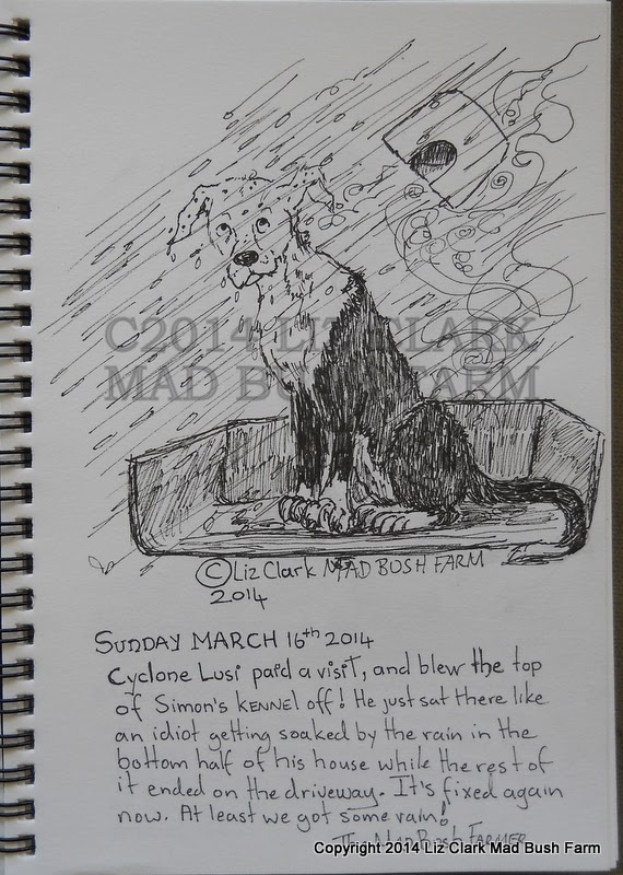 It's been a month or more since I did my last blog post. I've had nothing much to say I guess. I have a lot to tell now. More to think on before I write about it. But just for laughter's sake, a smile and a chuckle, the dog ended up with half a kennel after Cyclone Lusi came through and blew everything to kingdom come.
